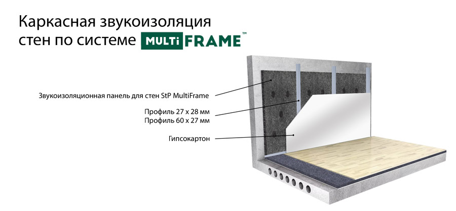 Звукоизоляционная система MultiFrame работает эффективно на устранение ударного и воздушного шума как внутри помещения, так и снаружи. Громкая музыка, лай собаки, детский плач, звук телевизора и другие не приятные шумы – не помешают комфортному и спокойному пребыванию дома.