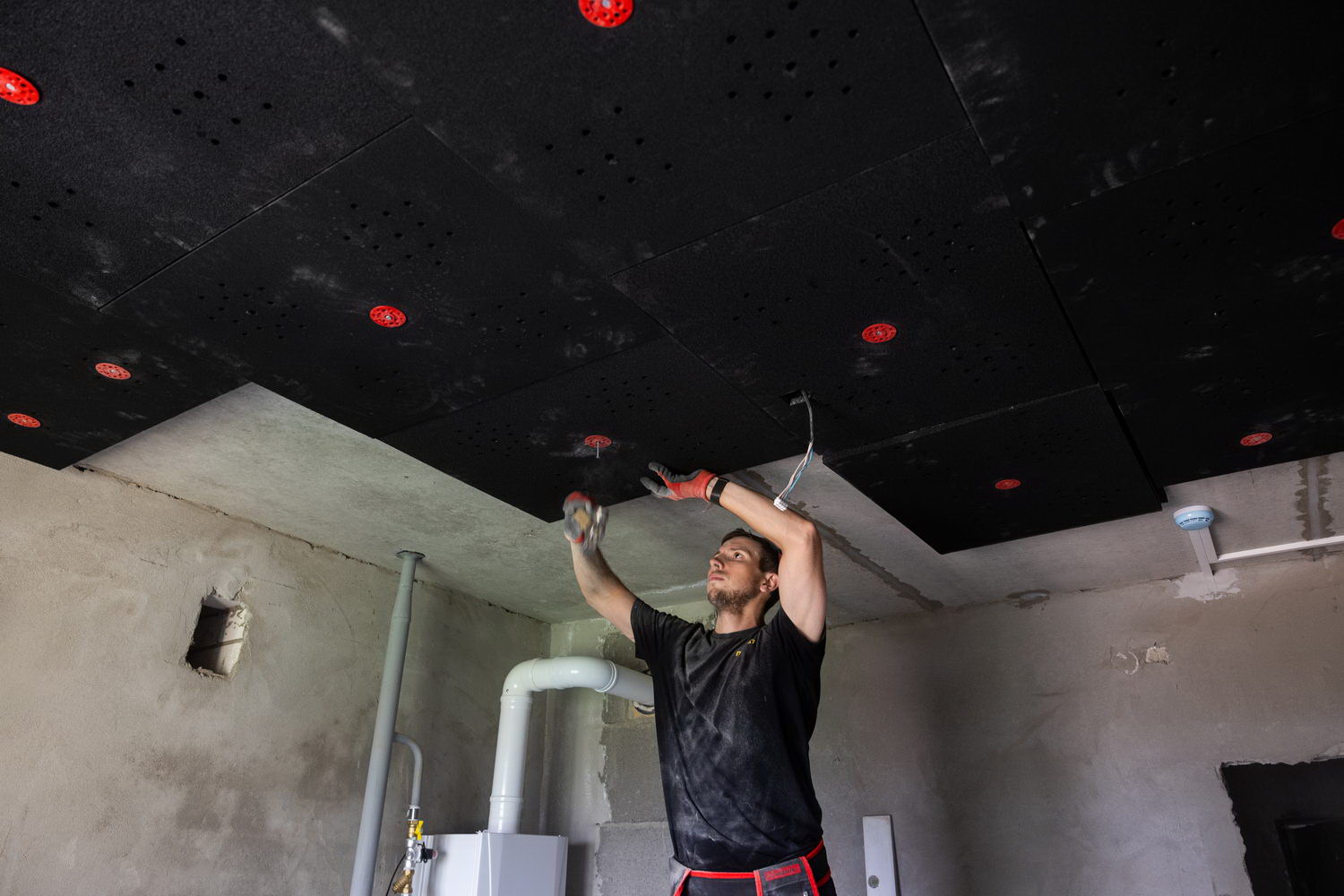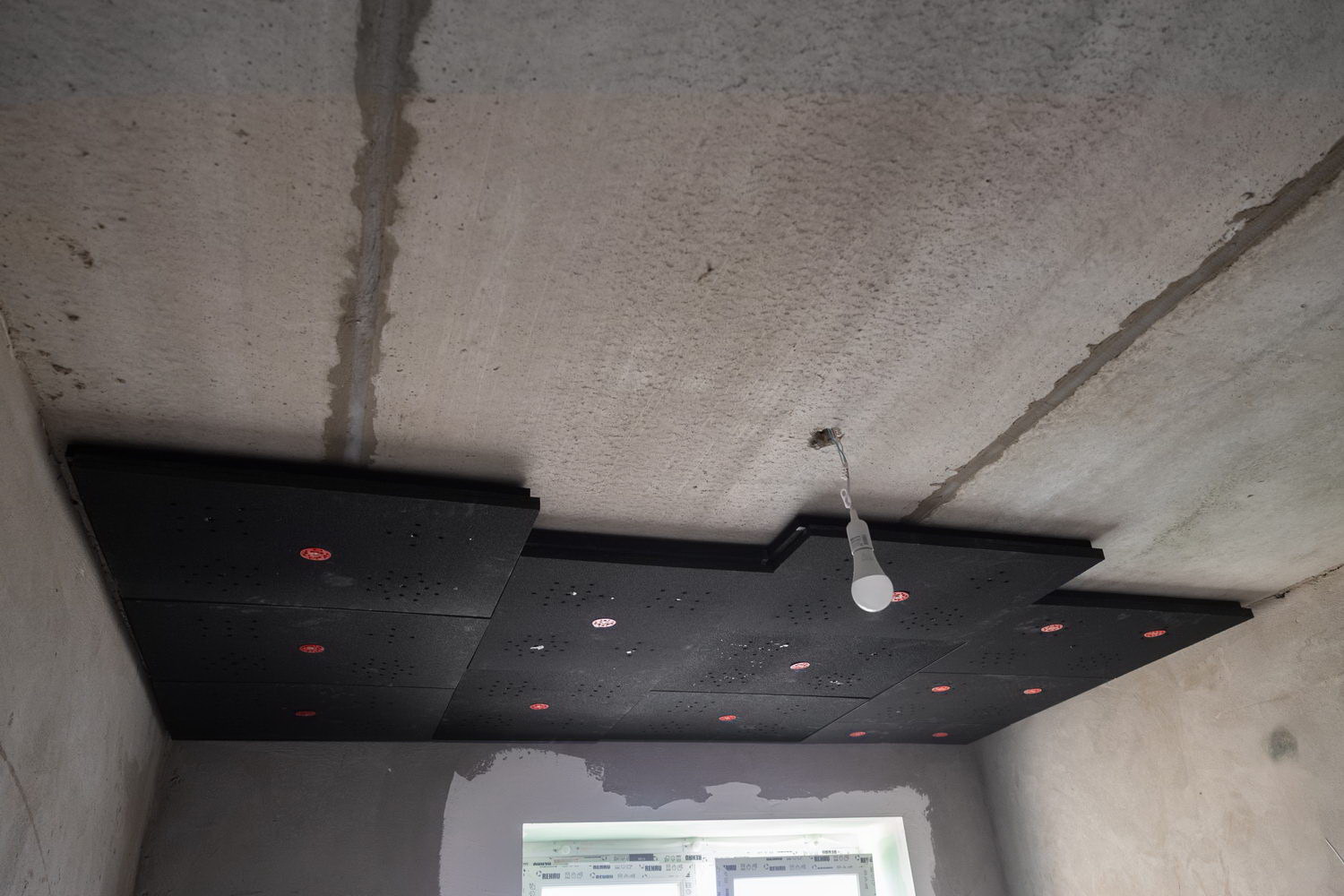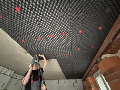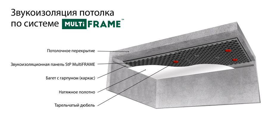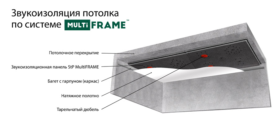 Это современная модульная система звукоизоляции для потолка, эффективность которой достигается за счет общей конструкции решения, состоящей из: