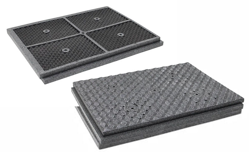 Состав: Каркас - гранулы ЕРР. Наполнитель: акустический открытоячеистый материал Eco Foam c волнообразной поверхностью.