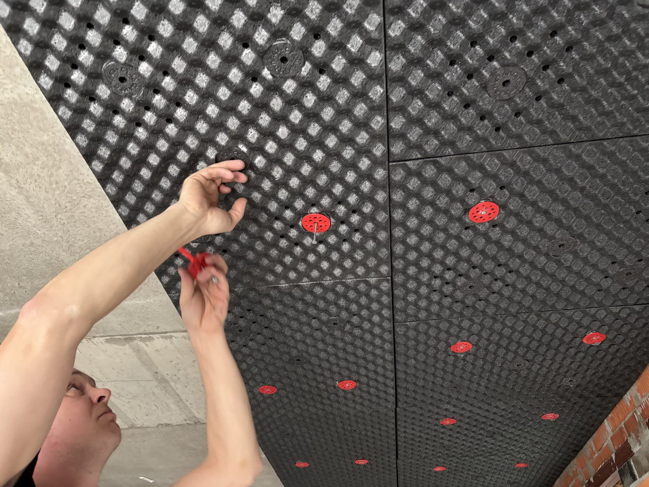 Каждая панель крепится всего на два тарельчатых дюбель-гвоздя. Система «шип-паз» позволяет сделать конструкцию монолитной. Материал точно не отвалится со временем.