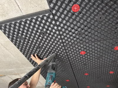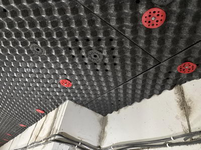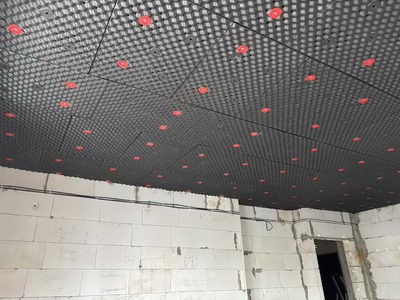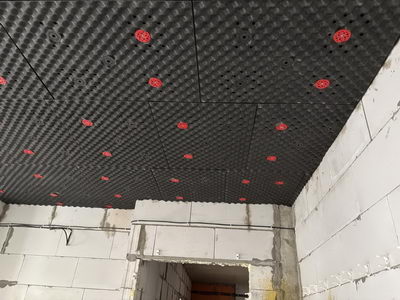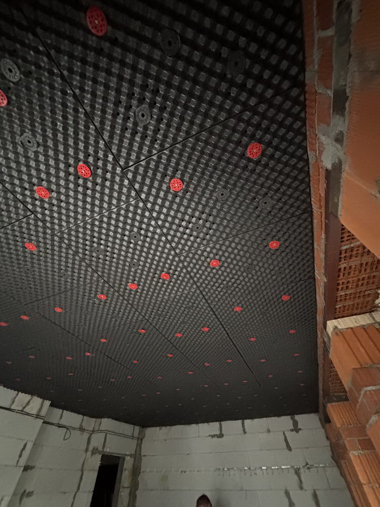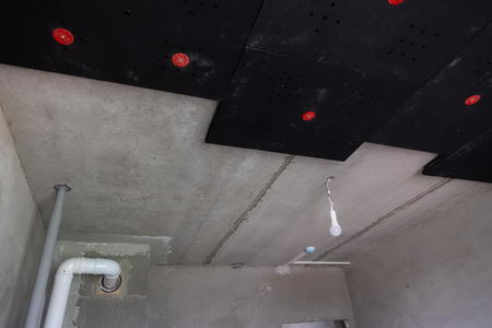 Наши панели отлично пропускают влагу и не способствуют ее задержке и конденсации. При возникновении такой неприятной ситуации вся жидкость окажется в полотне натяжного потолка, ее можно будет спокойно слить и расправить полотно обратно. Демонтаж шумоизоляции не потребуется.